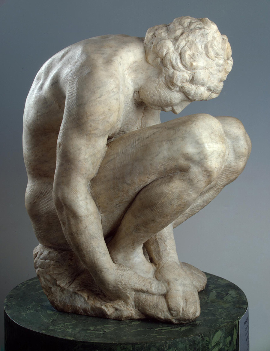 This 167-cm high marble statue was a gift to Peter the Keen from the Vatican (other sources say it was exchanged for the relics of St. Bridget of Sweden). The "infidel idol" was initially put on public display in the Summer Garden, before beingness moved to the Tauride Palace, dwelling house of Prince Potemkin. The statue was transferred to the Hermitage in 1852 to mark the opening of the New Hermitage (where it all the same stands in Room 109).